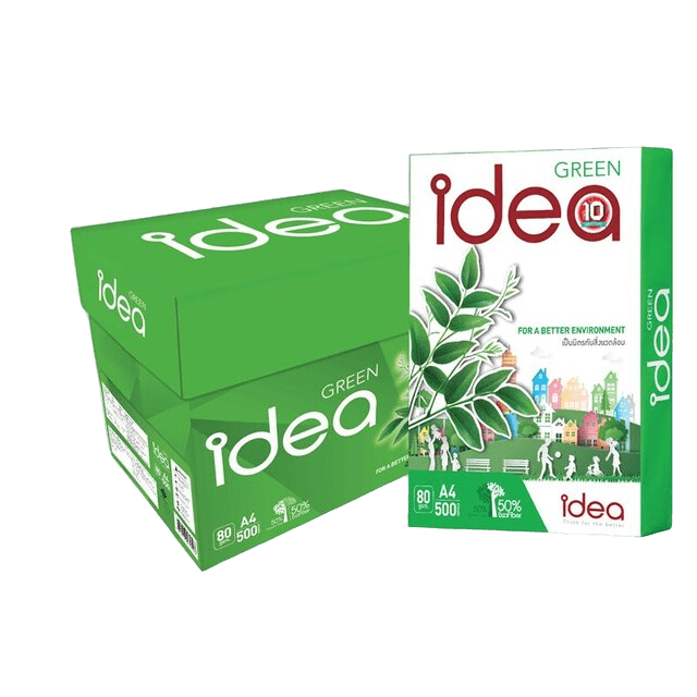 กระดาษ Idea Green คือกระดาษที่มีความหนา 80 แกรมเหมาะสำหรับผู้รักษ์สิ่งแวดล้อมและต้องการกระดาษคุณภาพพรีเมี่ยม ไว้เสนองานผู้ใหญ่ที่มีความสำคัญมาก เเละต้องการให้เอกสารดังกล่าวสามารถที่จะเก็บรักษาเอาไว้ได้นาน และให้เอกสารดูดีน่าเชื่อถือ ทำให้เวลาเสนองานอะไรก็ราบรื่นไม่ติดขัด