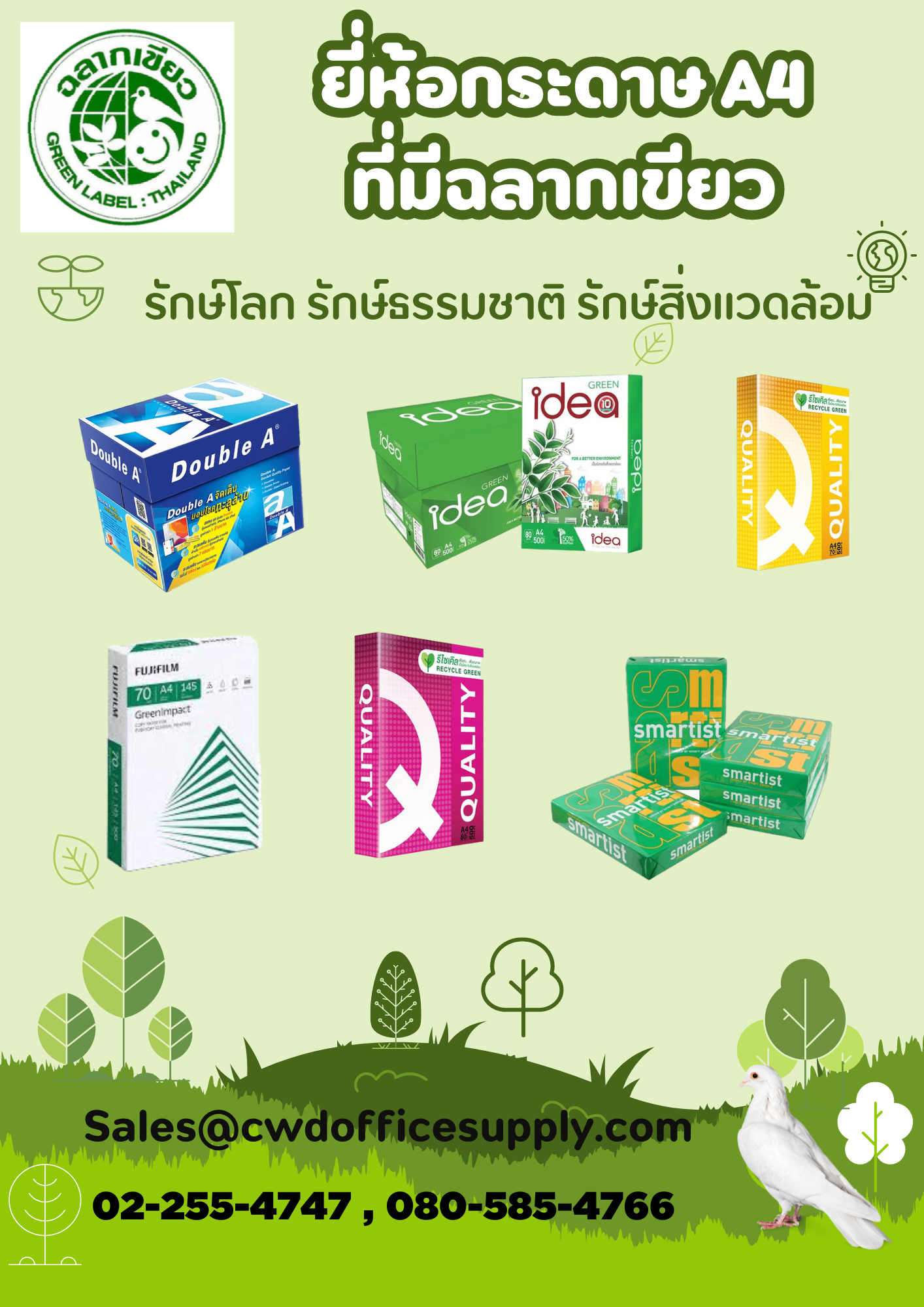 CWD ผู้นำค้าส่งอุปกรณ์สำนักงานราคาส่งทุกชนิด และ จำหน่ายกระดาษ A4 ฉลากเขียว มอก.
