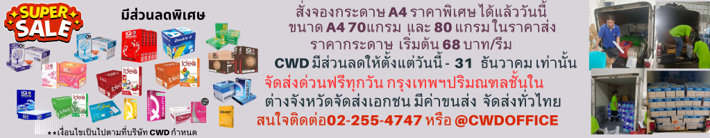 - กระดาษ 1 รีม ประกอบด้วยกระดาษทั้งหมด 500 แผ่น โดยทาง CWD จำหน่ายขั้นต่ำ 5 รีม (ซึ่งจะซีลด้วยพลาสติกอย่างดี) กระดาษจะถูกห่อด้วยพลาสติกอย่างดีเพื่อป้องกันความชื้นจากด้านนอกเข้าสู่เนื้อกระดาษที่อยู่ด้านใน
